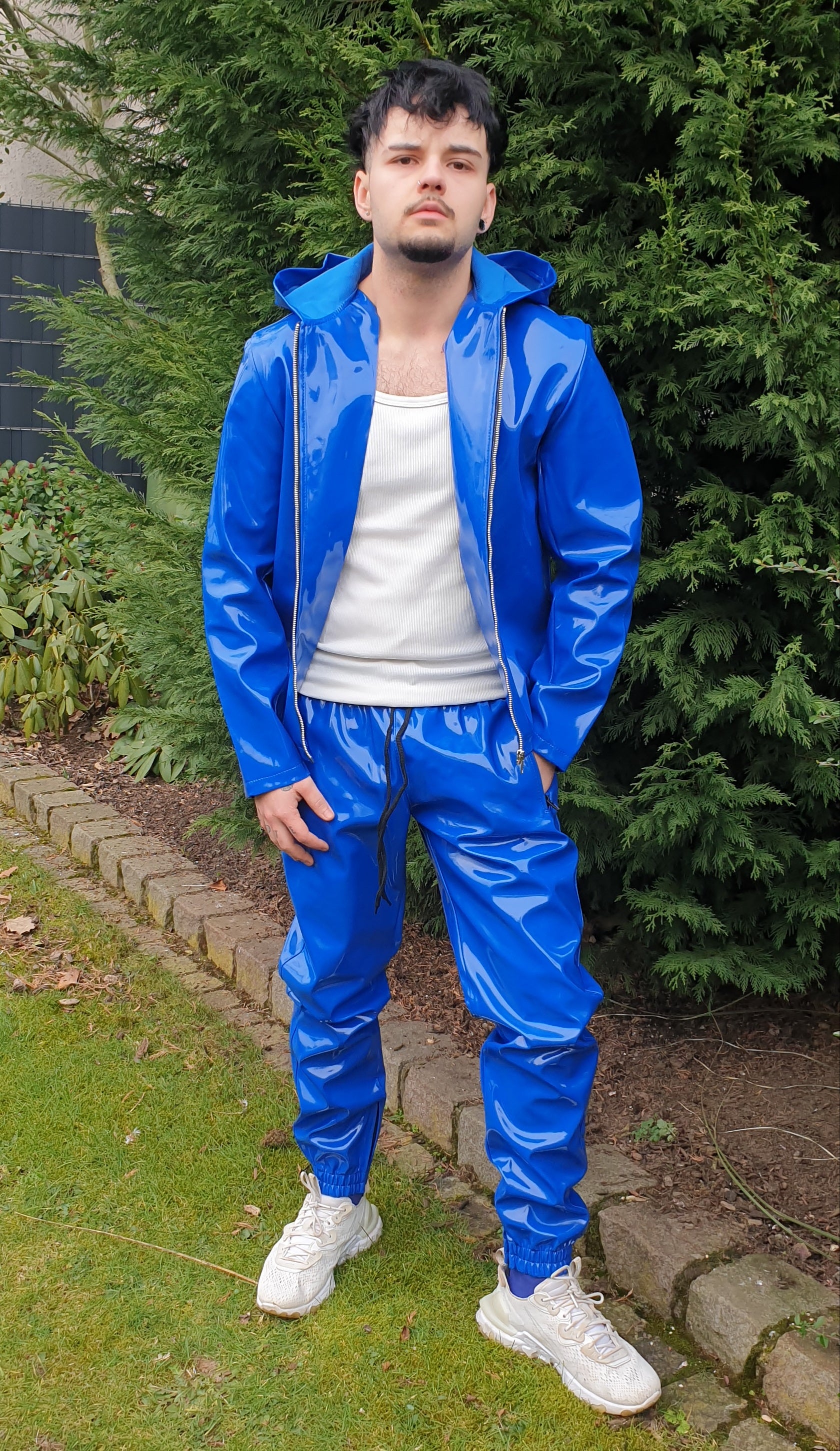 Lack Jacke Kapuzenjacke in Vinyl Qualität schwarz oder blau Reißverschluss Kapuze