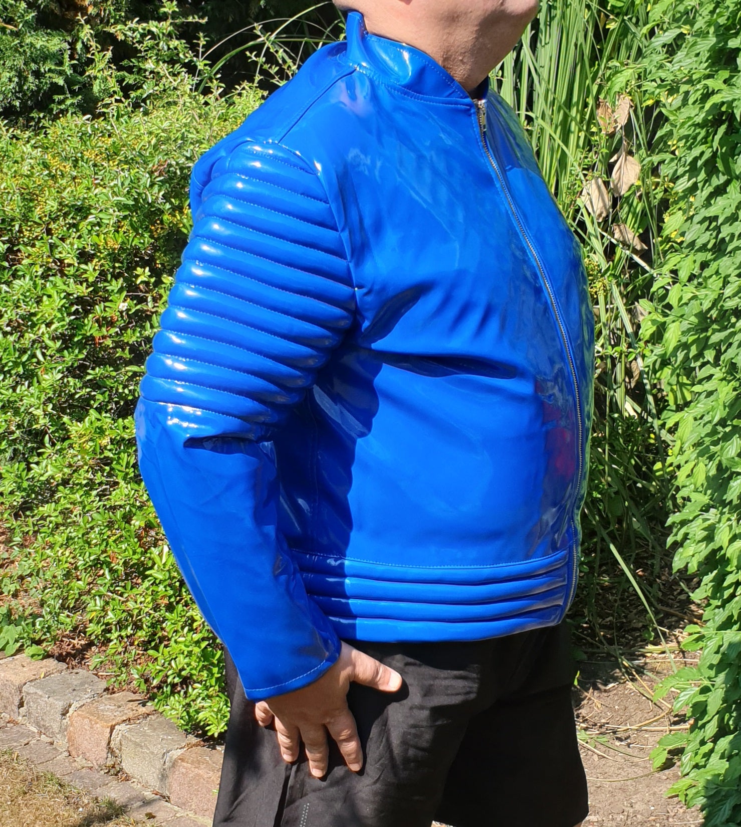 Lack Jacke in Vinyl Qualität, Oberarmbereich sowie Jackenende gesteppt, kleiner Stehkragen, YKK Reißverschluss, angenehmes Innenfutter.