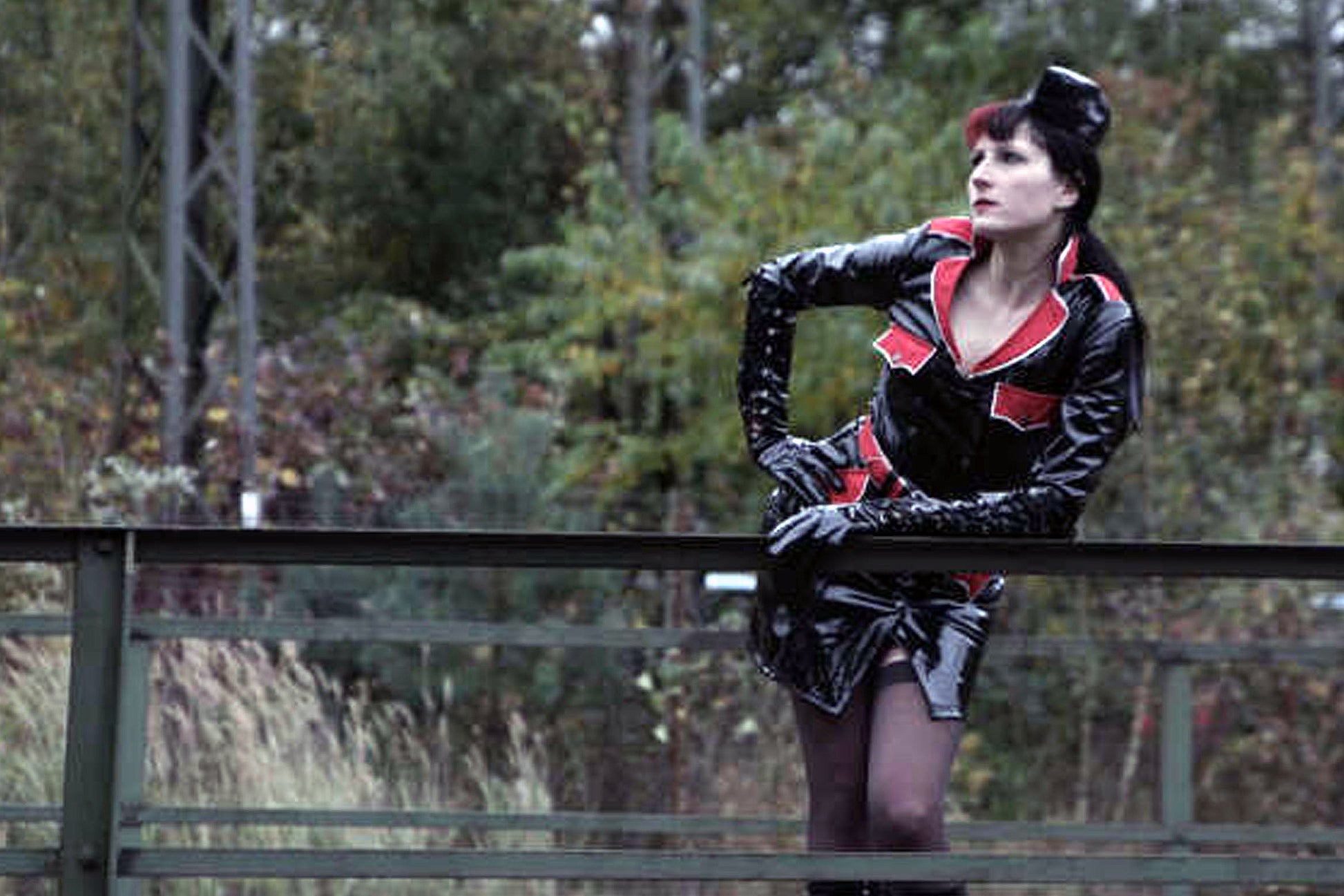Uniform Lack Kleid Vinyl Qualität Textilapplikation Druckknöpfe Gürtel schwarz rot weiß